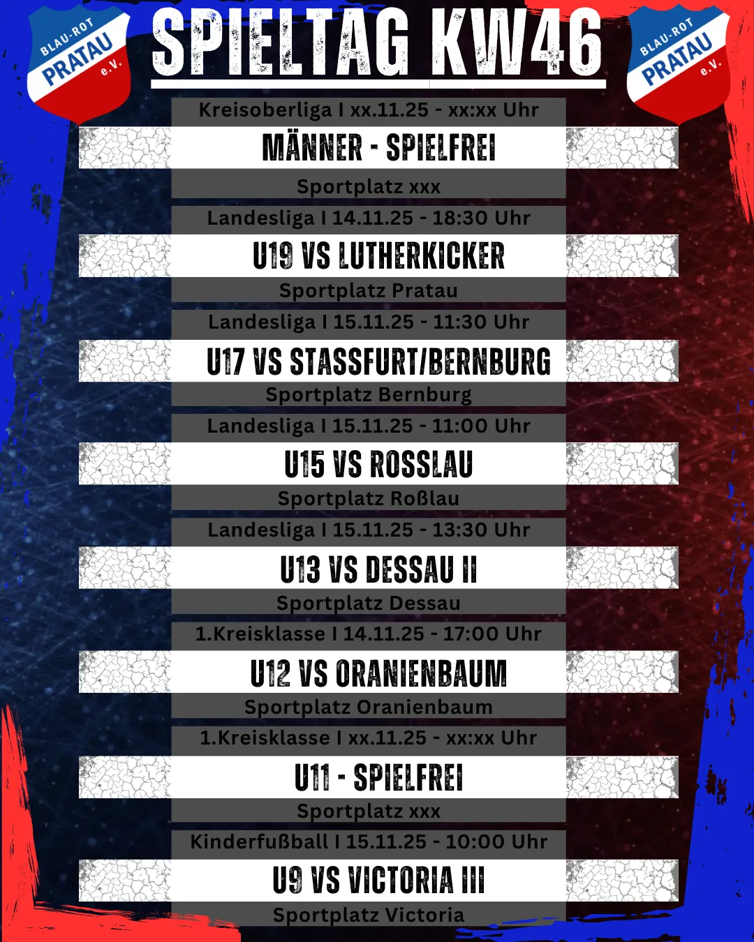 Die Männer haben spielfrei. Alle Nachwuchsmannschaften bis auf die U11 sind im Einsatz.