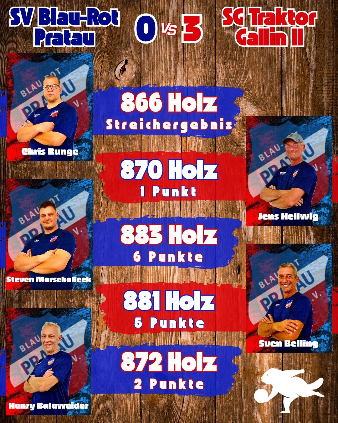 Gallin lag in Addition des Mannschaftsergebnis, aktuell mit 14 Holz vorn, allerdings nichts was Prataus Topspieler Henry Balaweider nicht gegen Thomas Knape aufholen könnte.