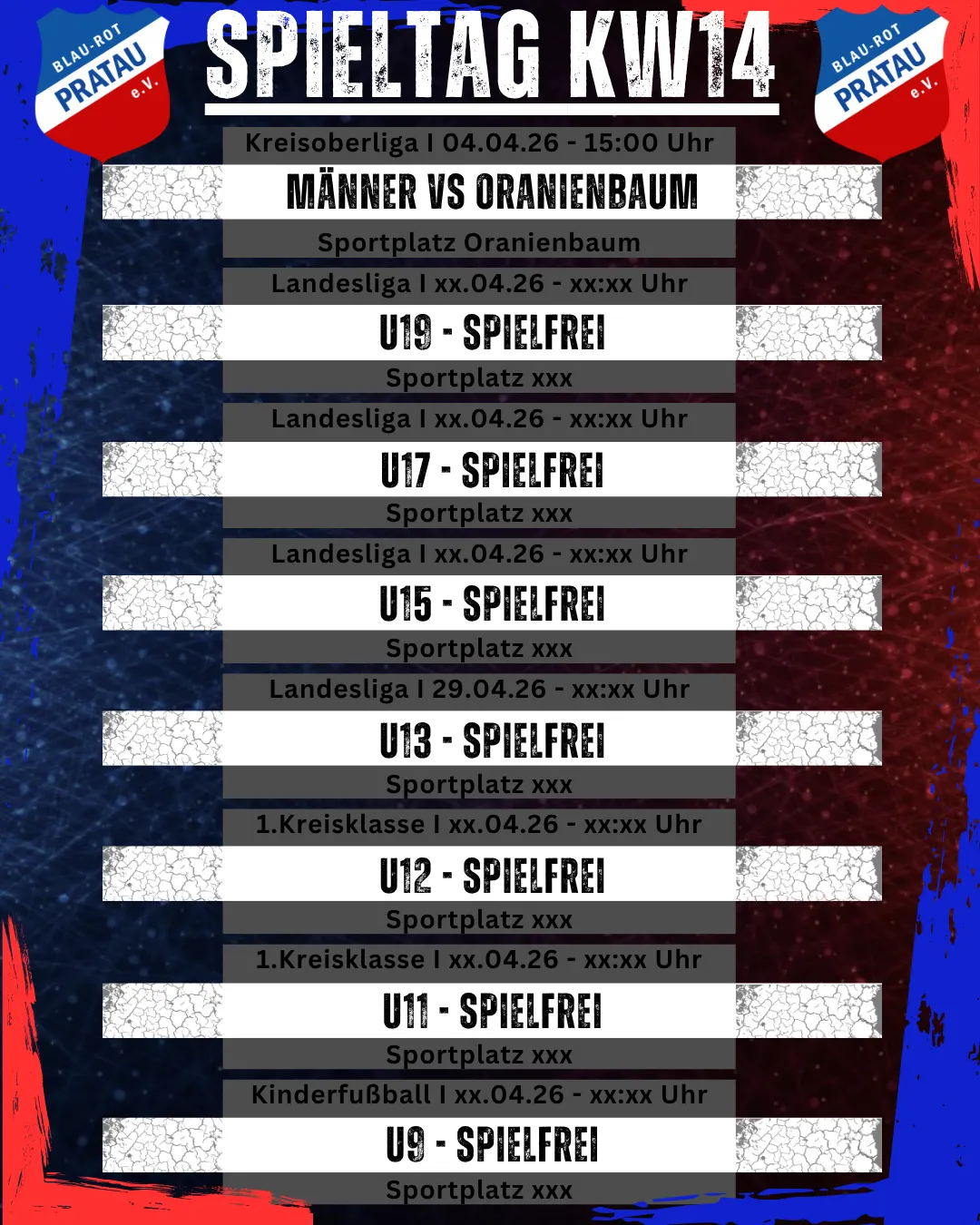 Die Osterferien haben alle Nachwuchsmannschaften fest im Griff. Einzig für unsere Männer steht das schwere Auswärtsspiel gegen Oranienbaum auf dem Plan.